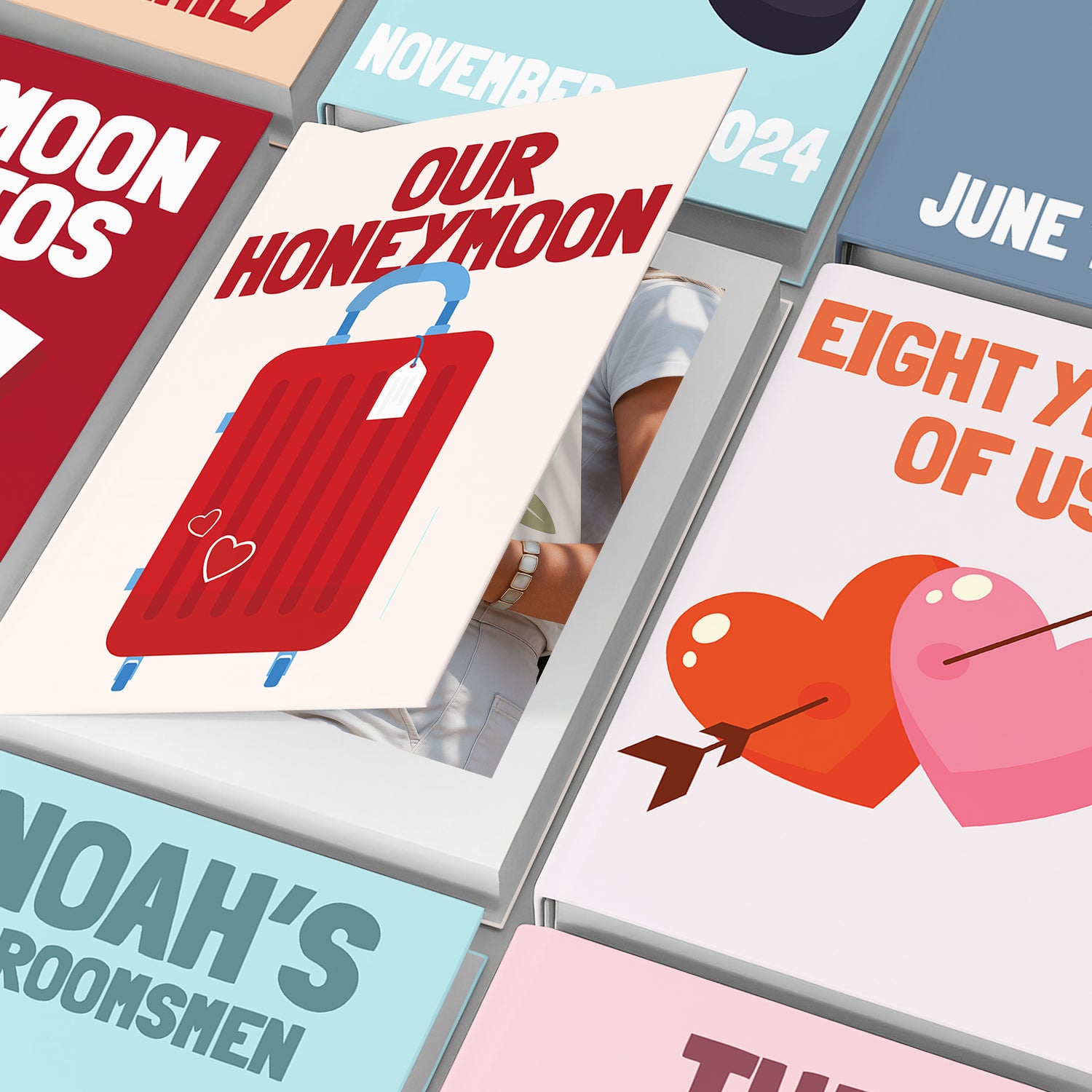 Turn your love story into custom photobooks. Re-live your favourite memories with your boyfriend, girlfriend, husband or wife. Surprise them with a beautiful visual journey of your life together so far - from first dates, to romantic moments, weddings, honeymoons and more.